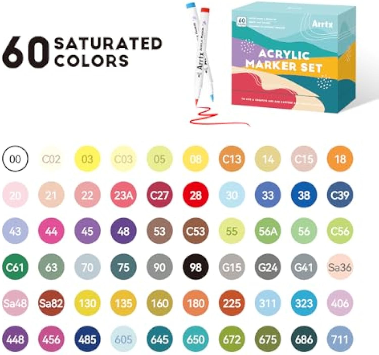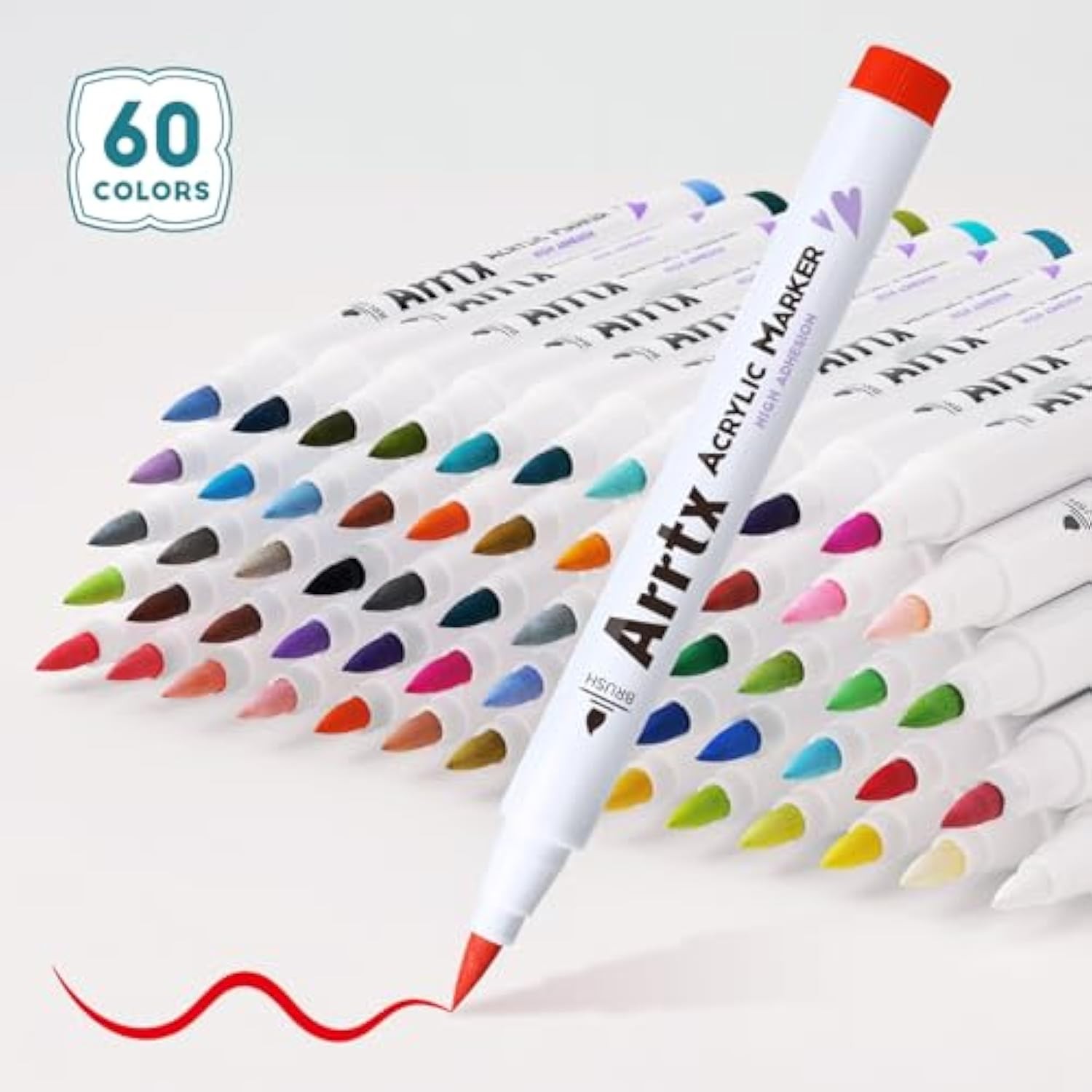 Arrtx 60 Colors Acrylic Paint Pens, Paint Markers Pens, for Artists Adults Coloring Drawing Scenery Landscape Natural- Brush Tip for Rock Painting, Wood, Canvas, DIY Crafts Making Art Supplies-60C