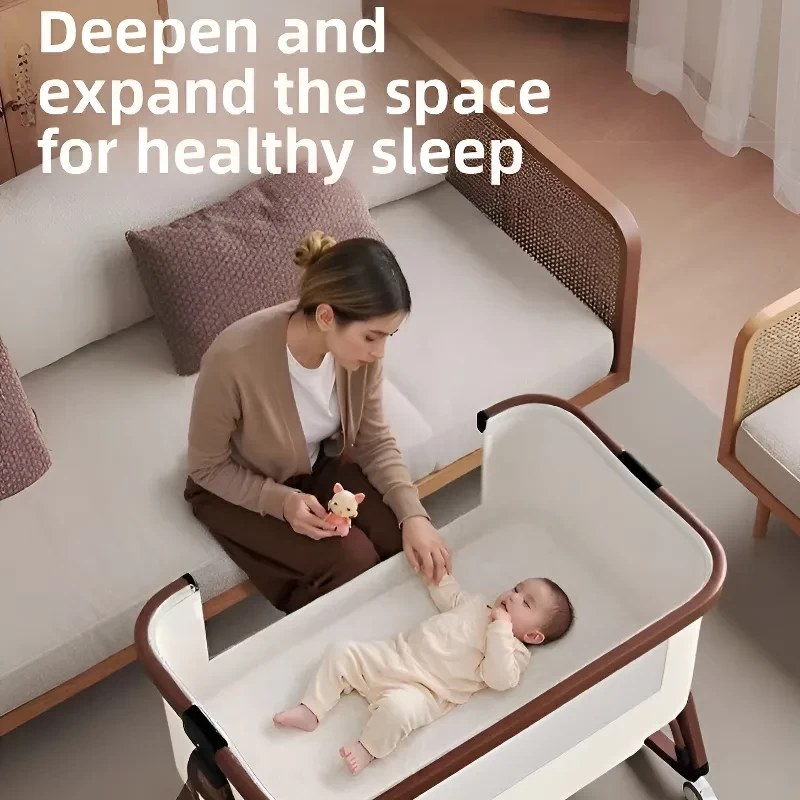 Baby Cribs Multifunctional Baby Bed with Mosquito Net - Adjustable Height, Splicable for Safe & Healthy Sleep
