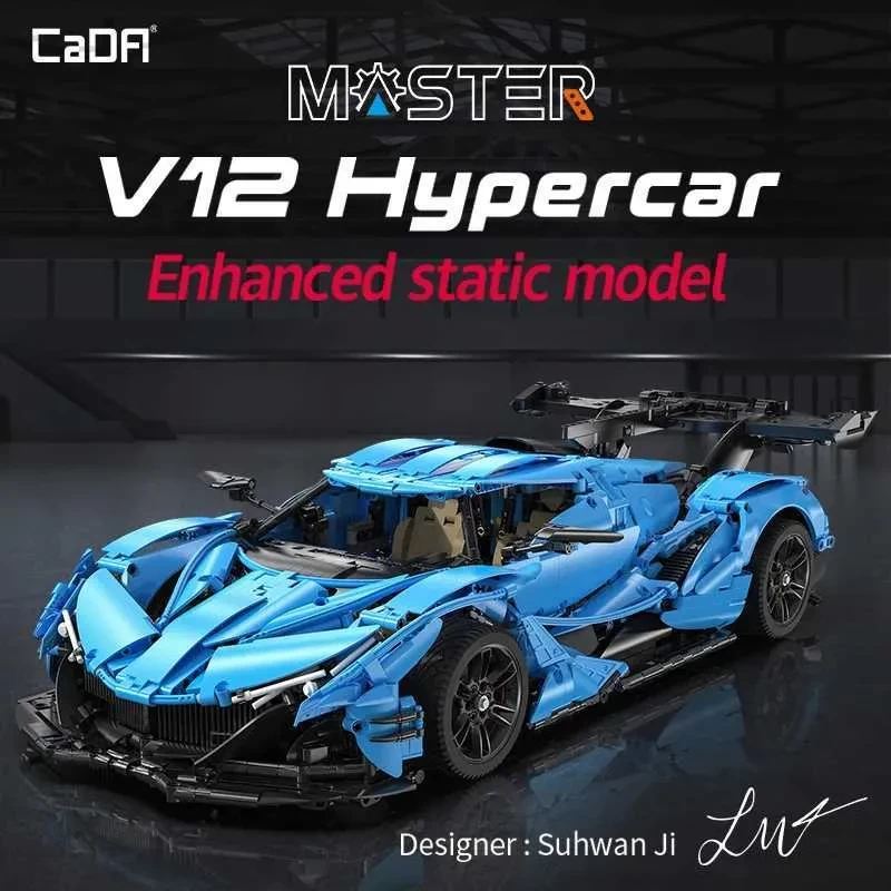 Cada 3865PCS 18 Ci Blue Racing Car V12 Hypercar Model Building Blocks Famous Supercar Sports Vehicle Bricks Toys Gifts