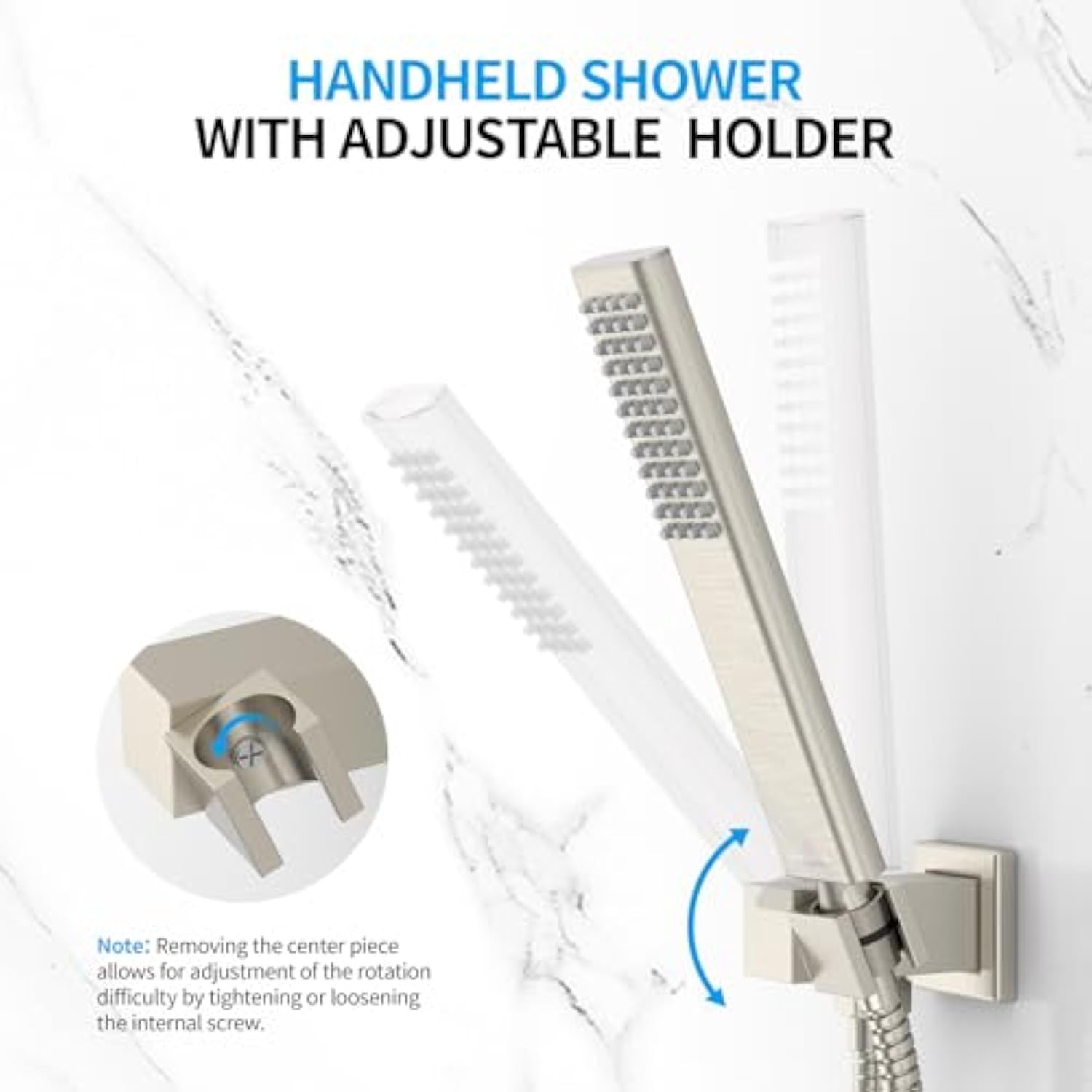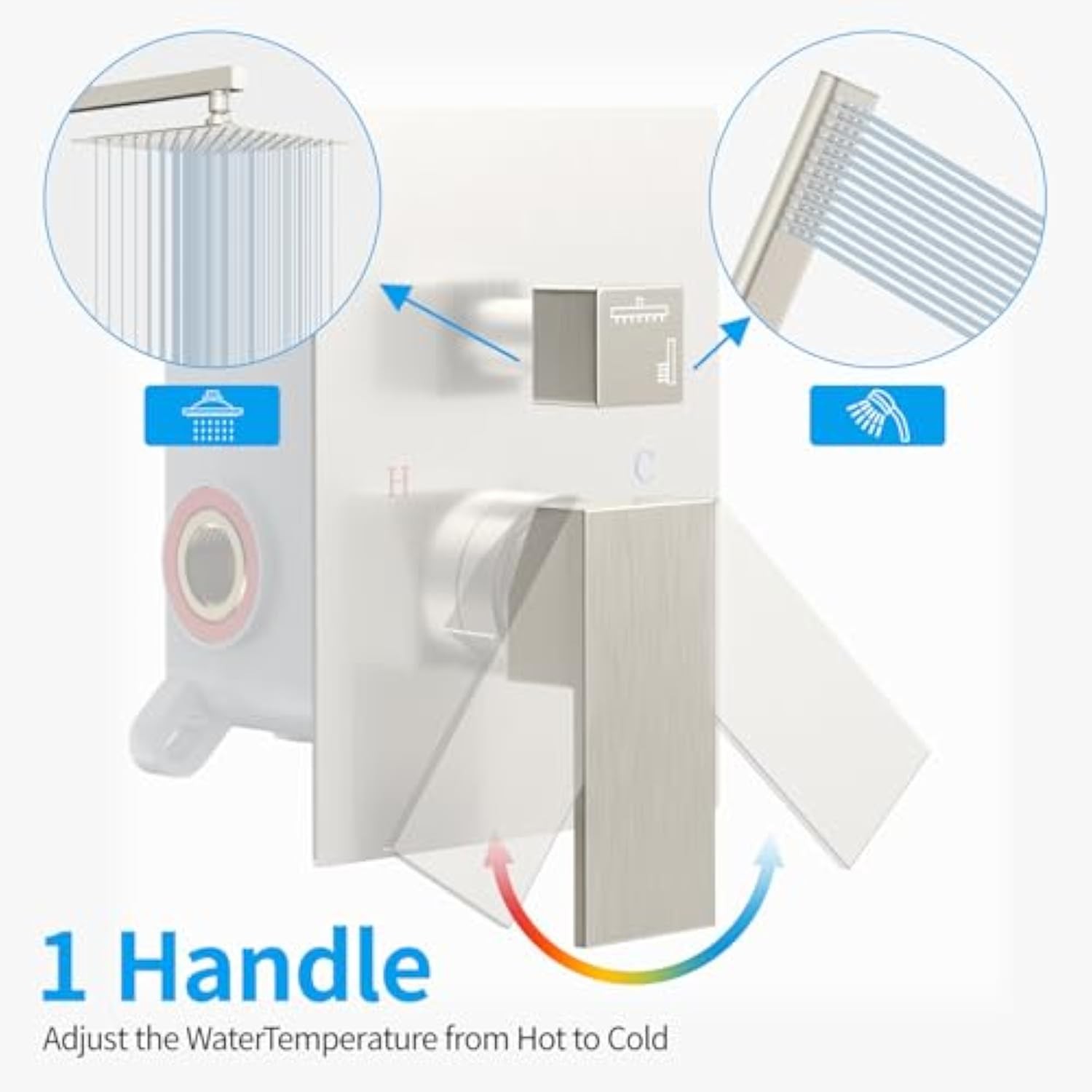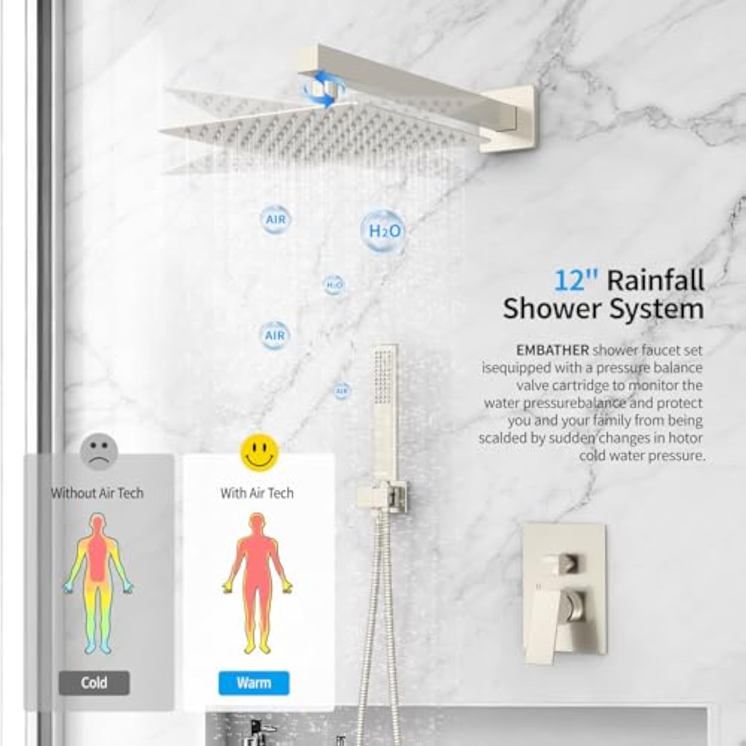EMBATHER Shower System 12" Shower Faucet Set for Bathroom Luxury Rain Mixer Combo Set Wall Mounted Rainfall Square Shower Head, Easy Installation, Contain Rough-in Valve & Trim, Brushed Nickel