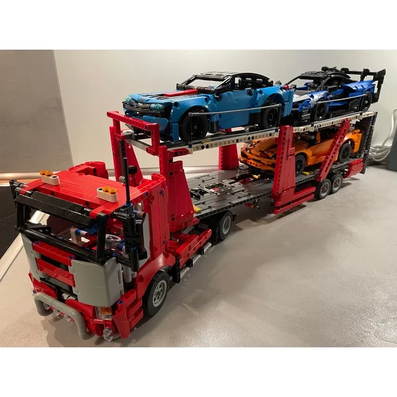 MOC Technical Truck Semi-Trailer Car Transporter Model Building Blocks DIY MOC-42098 Vehicle Bricks Children Toy Christmas Gift