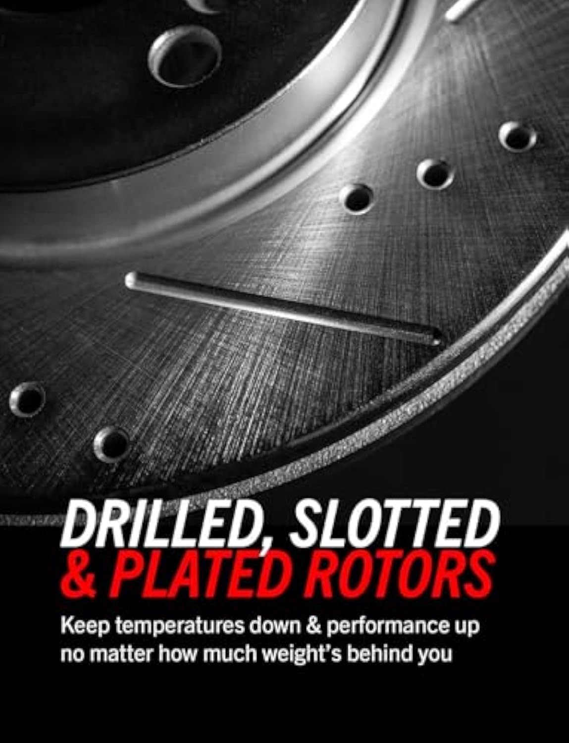 Drilled & slotted brake rotors provide maximum brake cooling and feature Silver Zinc Dichromate plating that protects against rust and corrosion