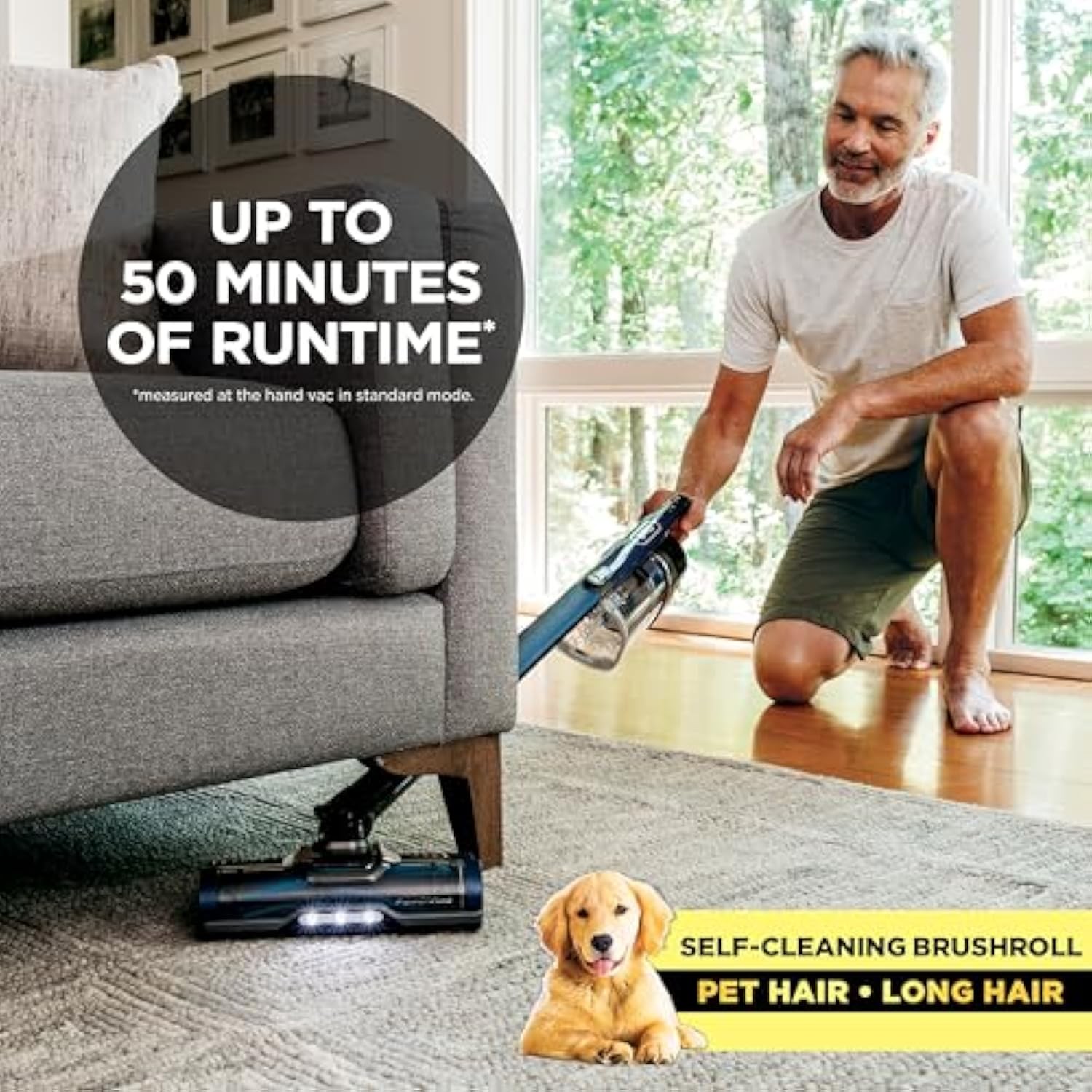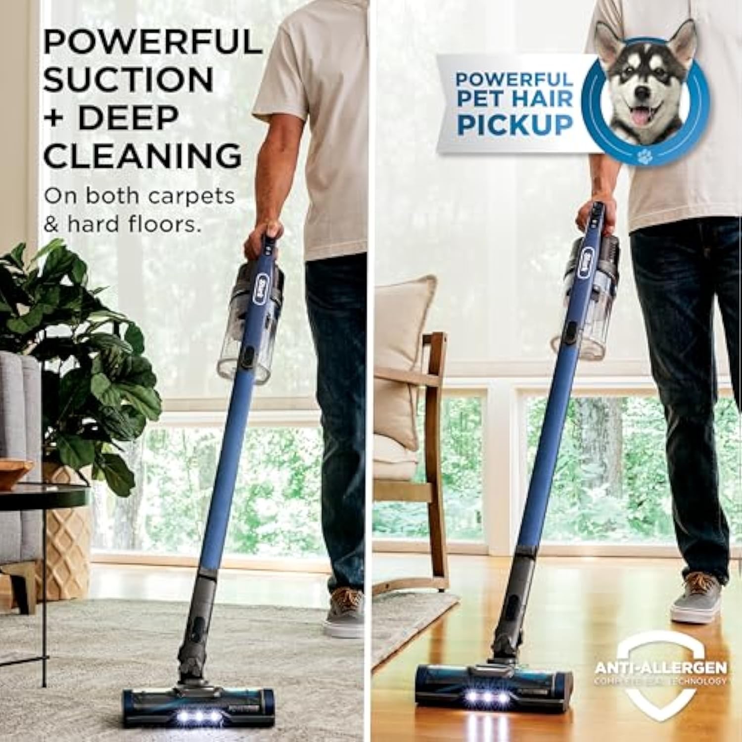 Shark Cordless Vacuum Cleaner with HEPA Filter, Lightweight, Portable, Rechargeable, Powerful Pet Hair Pickup, Removable Handheld, Crevice Tool, Dusting Brush, 50-min Runtime, Blue, IZ363HT