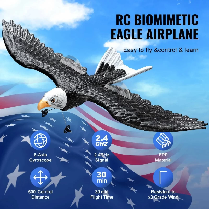 Eye-Catching Eagle Design: Stand out with this cool eagle-themed design, injecting imagination and excitement into your flying experience. Our remote airplane is perfect for adults, kids, beginners, and anyone who loves aviation fun. Spare parts like batteries and propellers keep the fun going without interruptions.