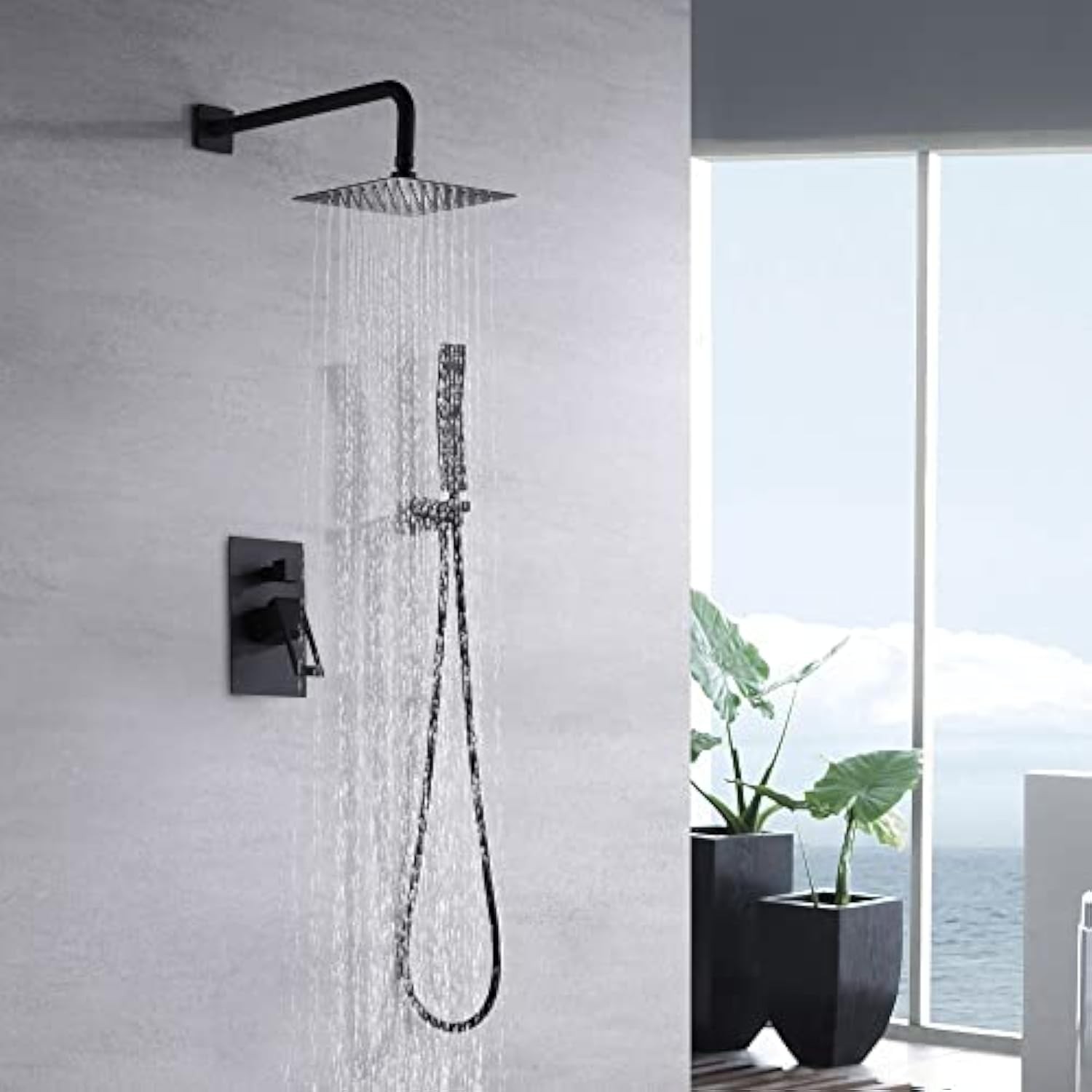 sumerain Matte Black Pressure Balance Shower Systems with 8 Inches Rain shower and Handheld, Rough-in Valve Body and Trim included